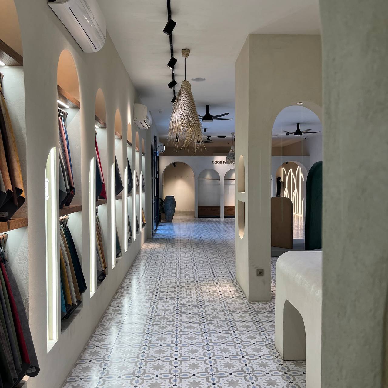 هدف از طراحی این فضا، ایجاد محیطی مدرن، کاربردی و لوکس برای نمایش و فروش انواع پارچه بود که بتواند نیازهای کارفرما را بهطور کامل پوشش دهد و تجربهای متفاوت به مشتریان ارائه کند.